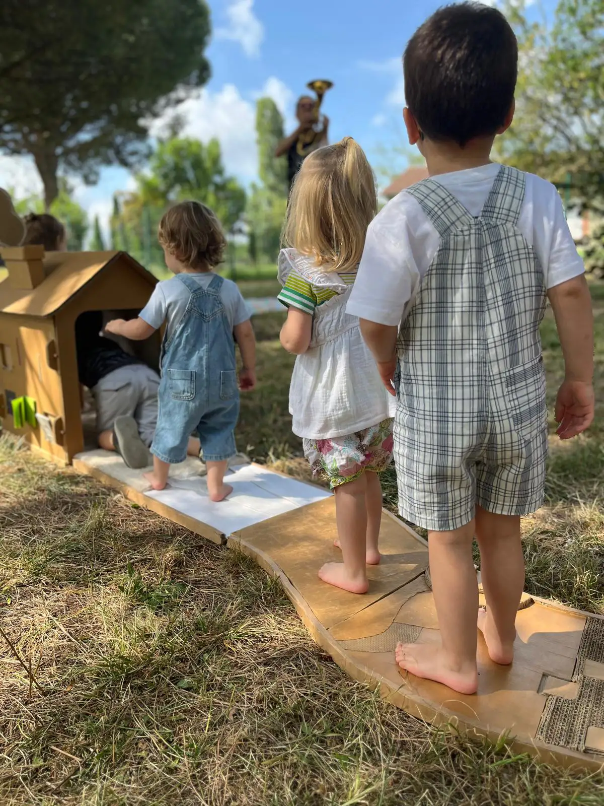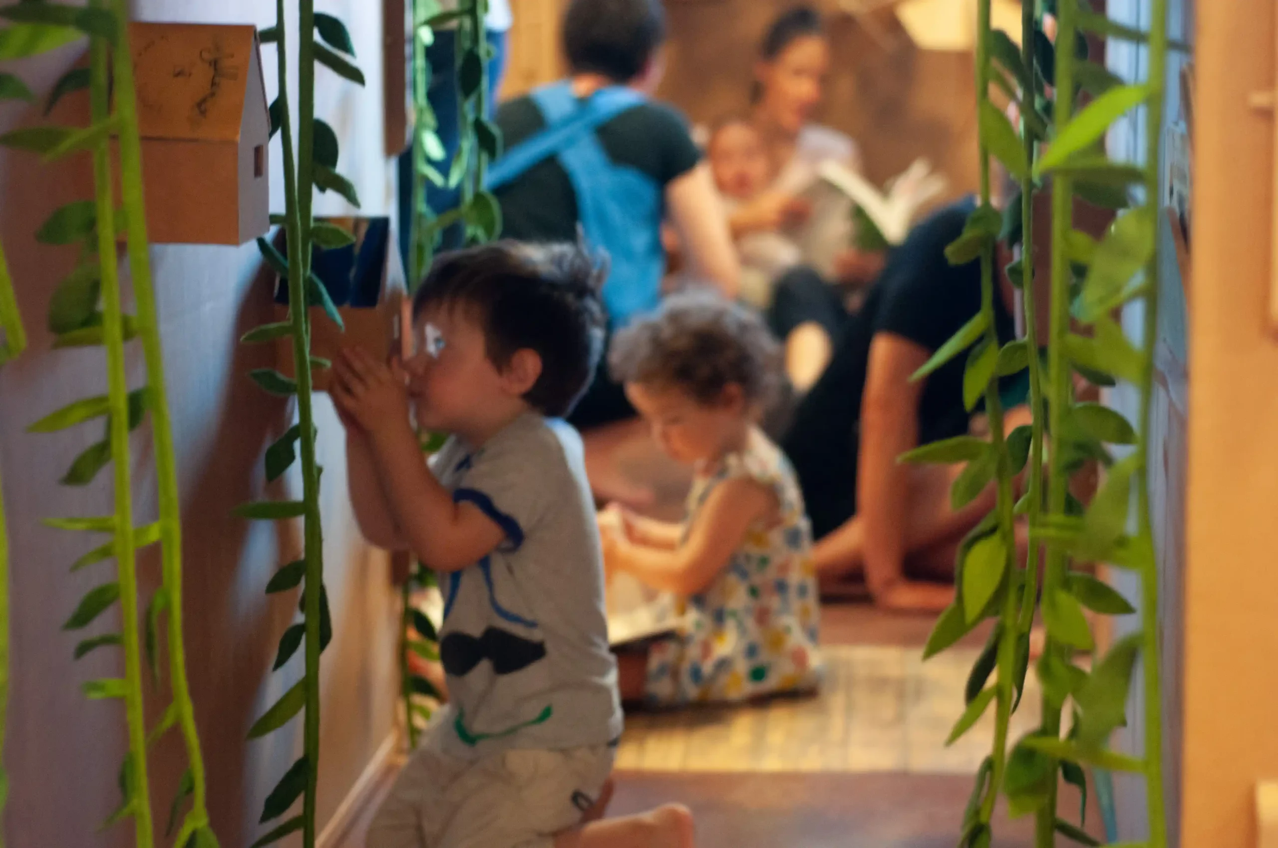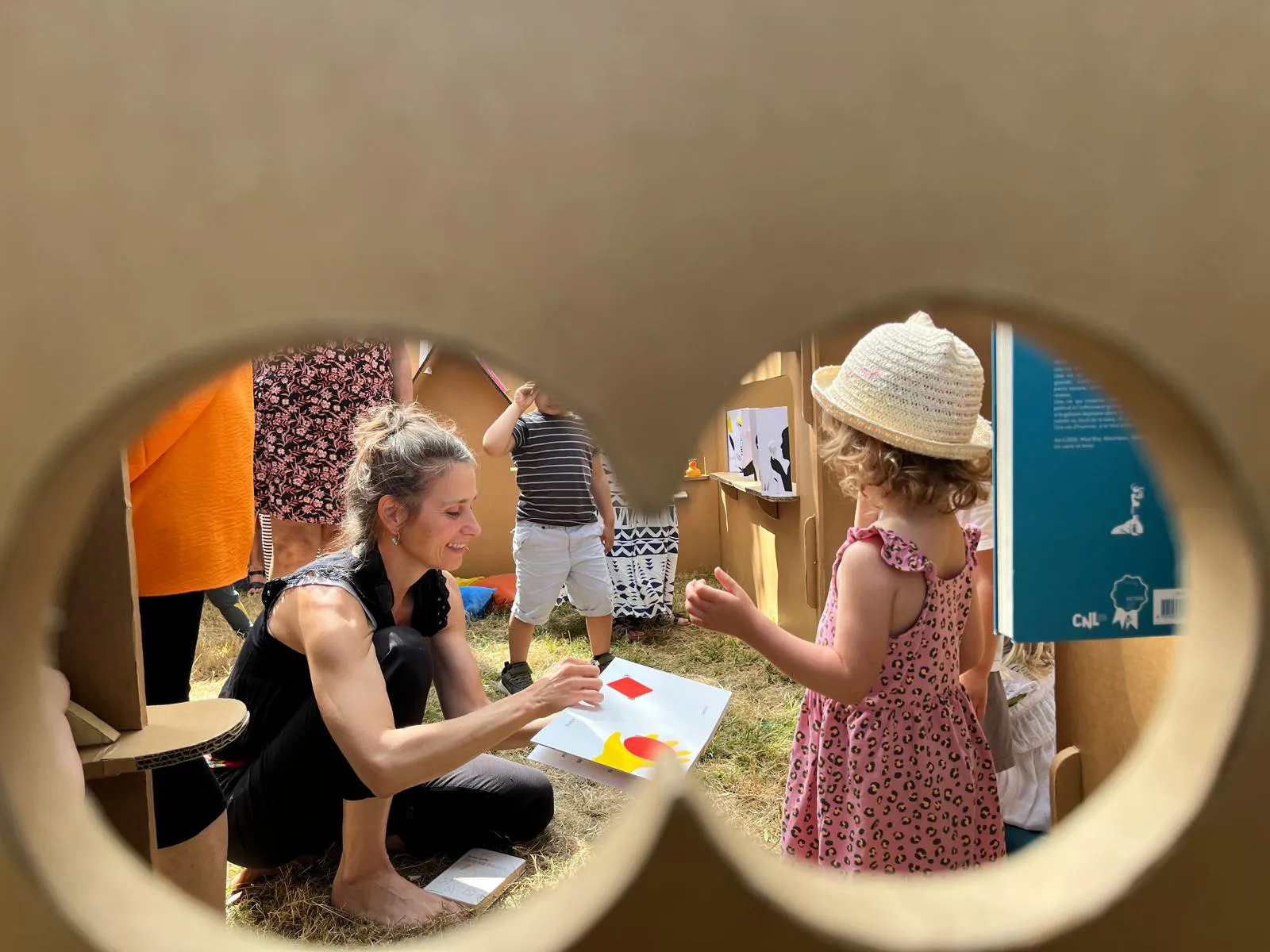 Des cabanes remplies de livres qui se cachent, se déplient, un labyrinthe-bibliothèque, un chemin tactile où se raconter nos histoires en mouvement… Petits mondes sensibles est une proposition polymorphe, une invitation à la lecture et à la rêverie, une installation imaginée comme un espace de jeu commun entre artistes et tout-petits. Au fil de l’exploration, une musicienne guide le public avec ses chansons tendres et poétiques et l’invite à se rassembler pour des lectures musicales et mouvementées.
